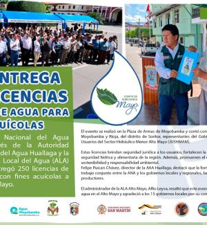 DescargarANA OTORGA NUEVAS LICENCIAS DE USO DE AGUA EN LA SUB CUENCA MAYO