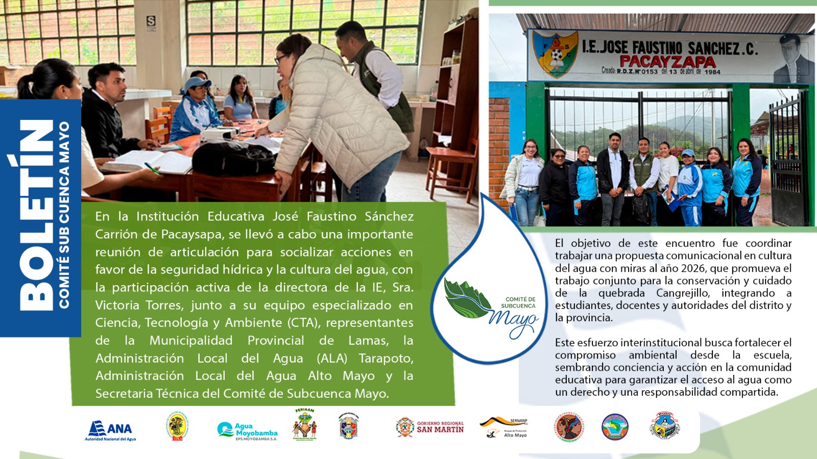 ANA IMPULSA CULTURA DEL AGUA CON COMPROMISO Y ARTICULACIÓN INTERINSTITUCIONAL EN LA CUENCA DEL RÍO MAYO.